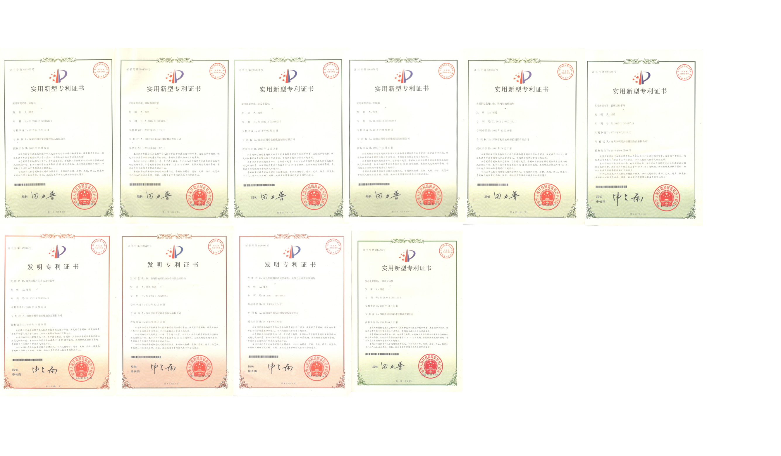 自 2001 年創立伊始,利勇安深耕硅膠制品領域,以創新驅動發展,持續進行技術研發與工藝革新,構建起堅實的知識產權壁壘。截至目前,公司已成功斬獲 10 余項國家專利證書,涵蓋產品設計、生產工藝及模具制造等多個維度。